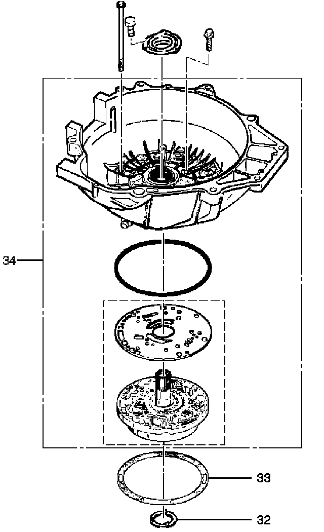 37. Install converter housing and oil pump assembly (34) to adapter case.