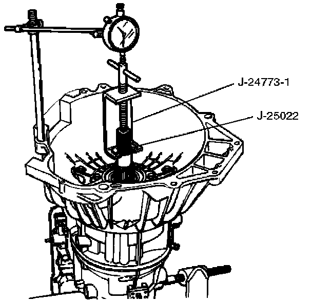 1. Install the J-23085-A selective washer gauging tool on the adapter case flange and against the input shaft.