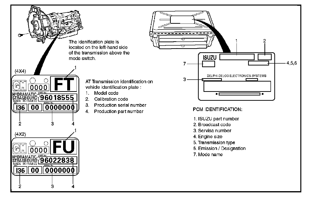 Automatic: Stamped on the identification plate, located on the left side of the transmission above the mode switch.