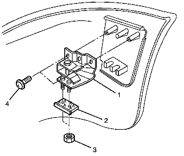 - Remove the two screws (4) and the two nuts (3) and release the claw from the washer (2).