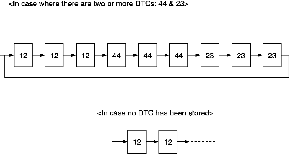 After displaying DTC 12 three times, one DTC after another is displayed, starting with the most recent one. (However, display is discontinued after about 5 minutes.)
