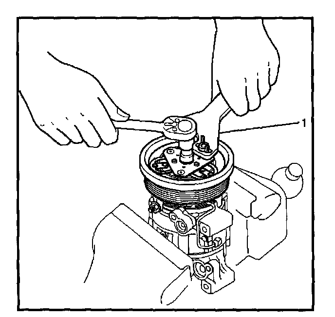 6. Install the drive plate to the compressor drive shaft together with the original shim(s) (1). Press the drive plate by hand.