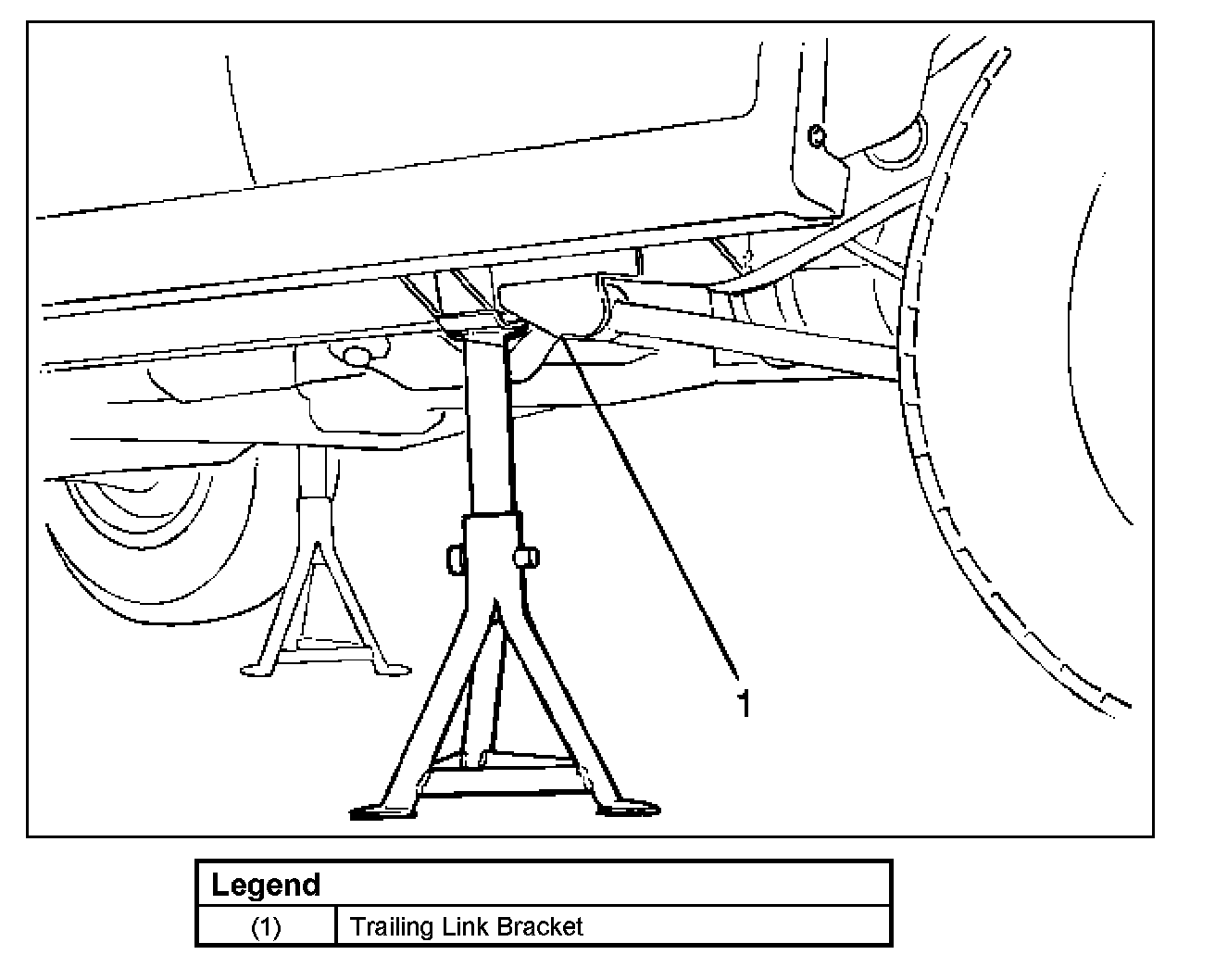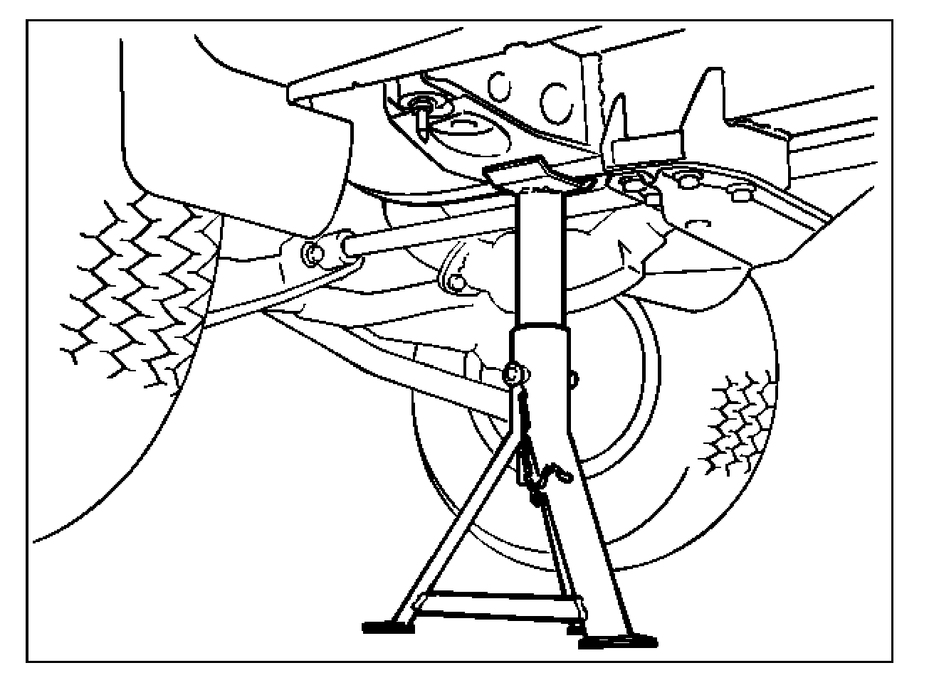 * Position the chassis stands at the bottom of the frame side member, just in front of the trailing link bracket.