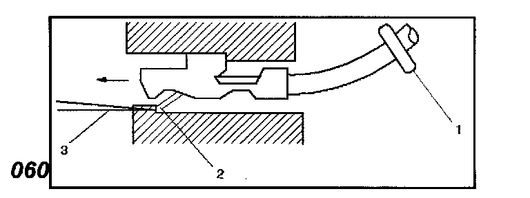 2. In order to install a terminal on a wire, the wire must be inserted through the seal (2) and through the connector (3).