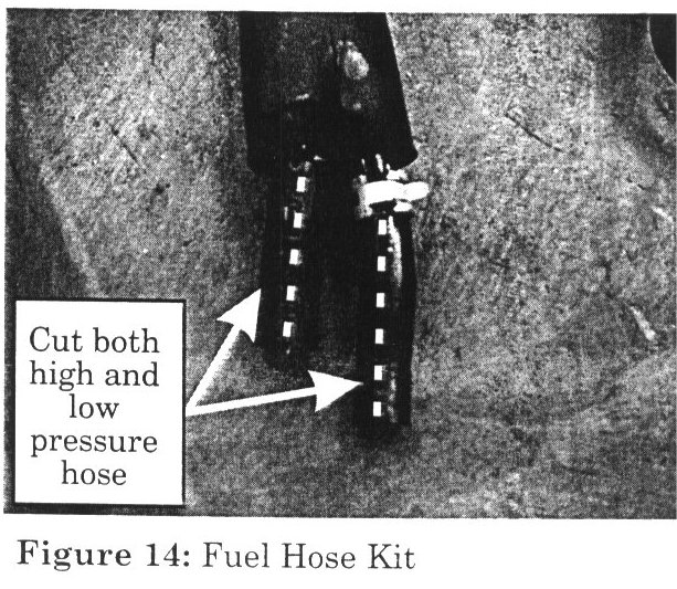 19. Carefully use a blade to cut both high and low pressure hoses to allow for easy removal from the fuel lines (Figure 14).