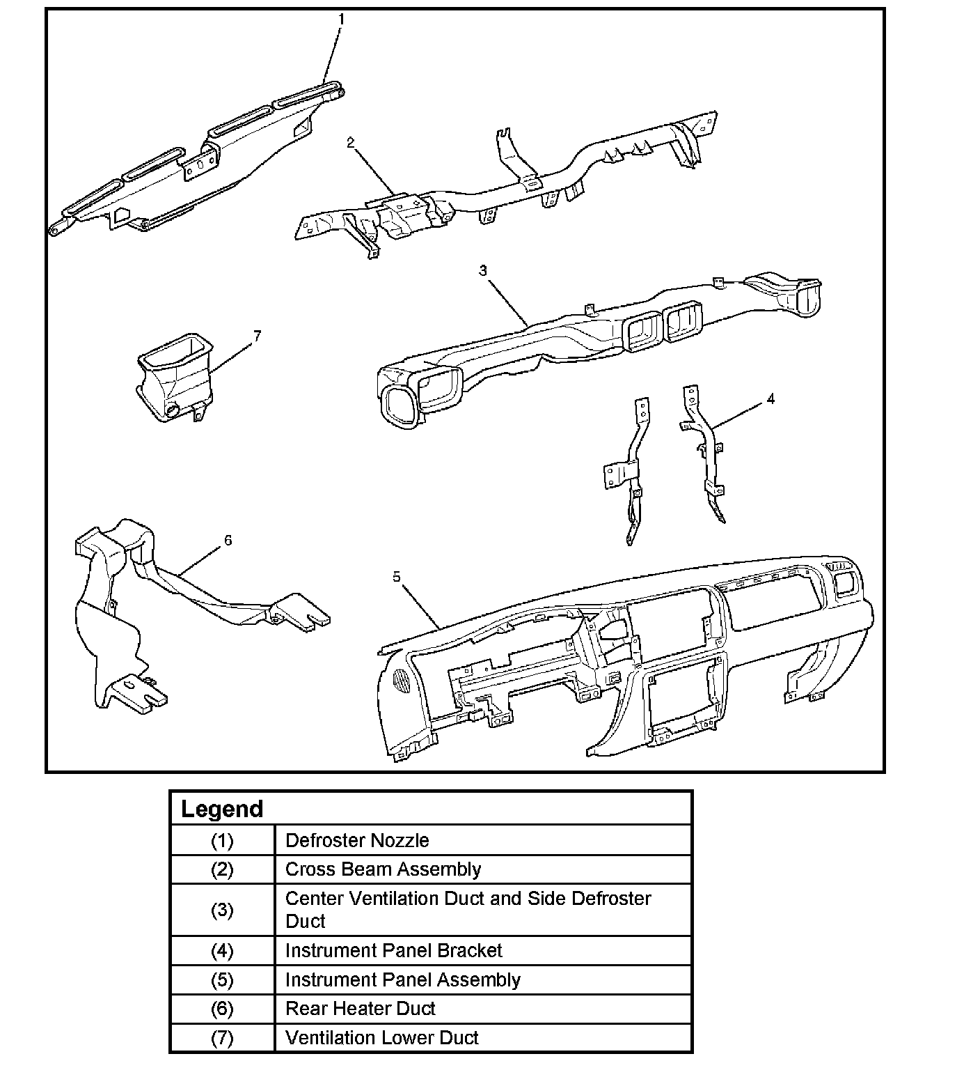REAR HEATER DUCT, DEFROSTER NOZZLE AND VENTILATION DUCTRear Heater Duct, Defroster Nozzle, Ventilation Duct and Associated Parts: