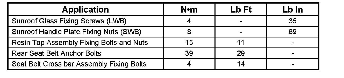 Torque Specifications:
