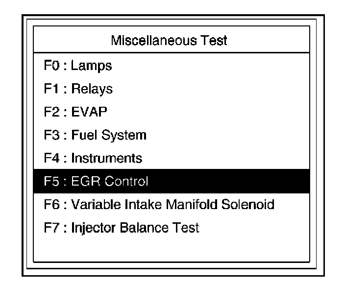 4. Select F5: EGR Control Test in the Miscellaneous Test.