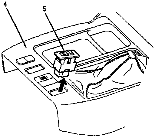 3. Push the lock from the back side of the front console assembly to remove the seat heater switch (5).