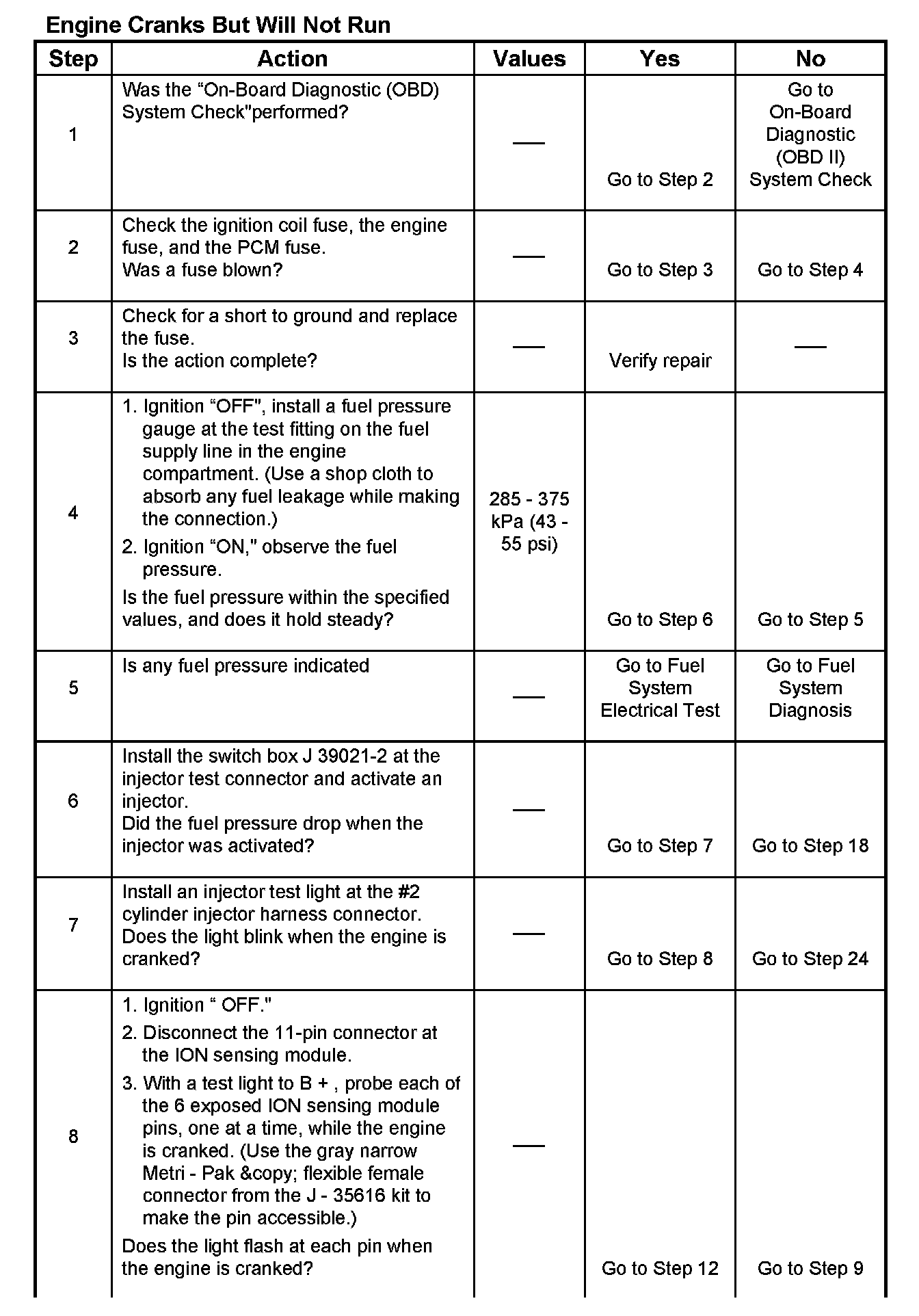 - Connect test light J 39021 - 95 to the connector. Do any of the light constantly illuminate or fail to blink when the engine is cranked? If so, repair the short or open circuit, or replace the PCM if indicated.