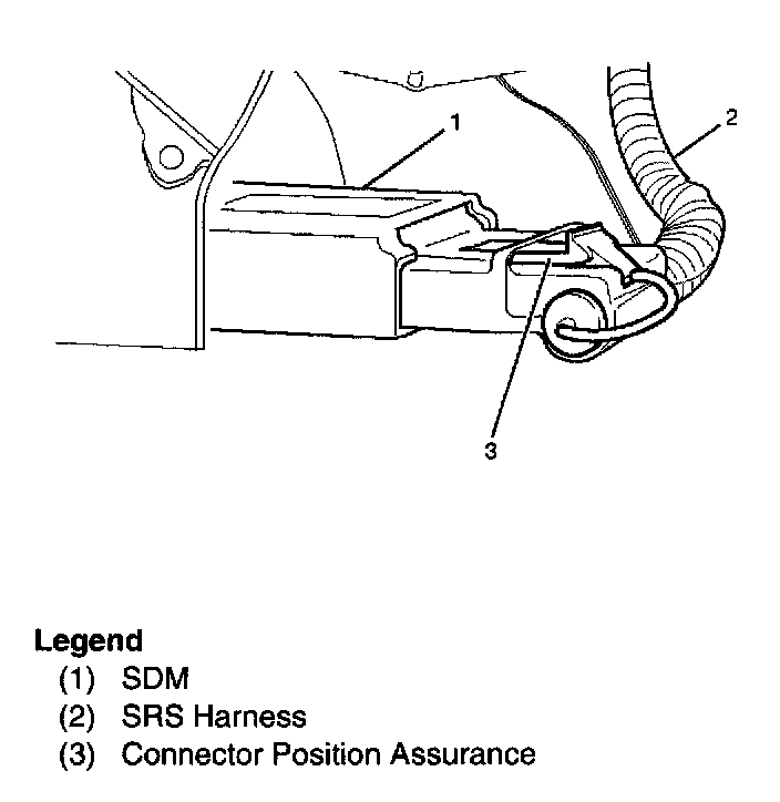 4. Pull CPA (Connector Position Assurance) out and push connector lock down to disconnect the SDM harness connector.