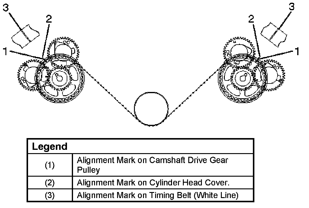 b. Align the marks on the camshaft drive gear pulleys with the corresponding alignment marks on the cylinder head covers.