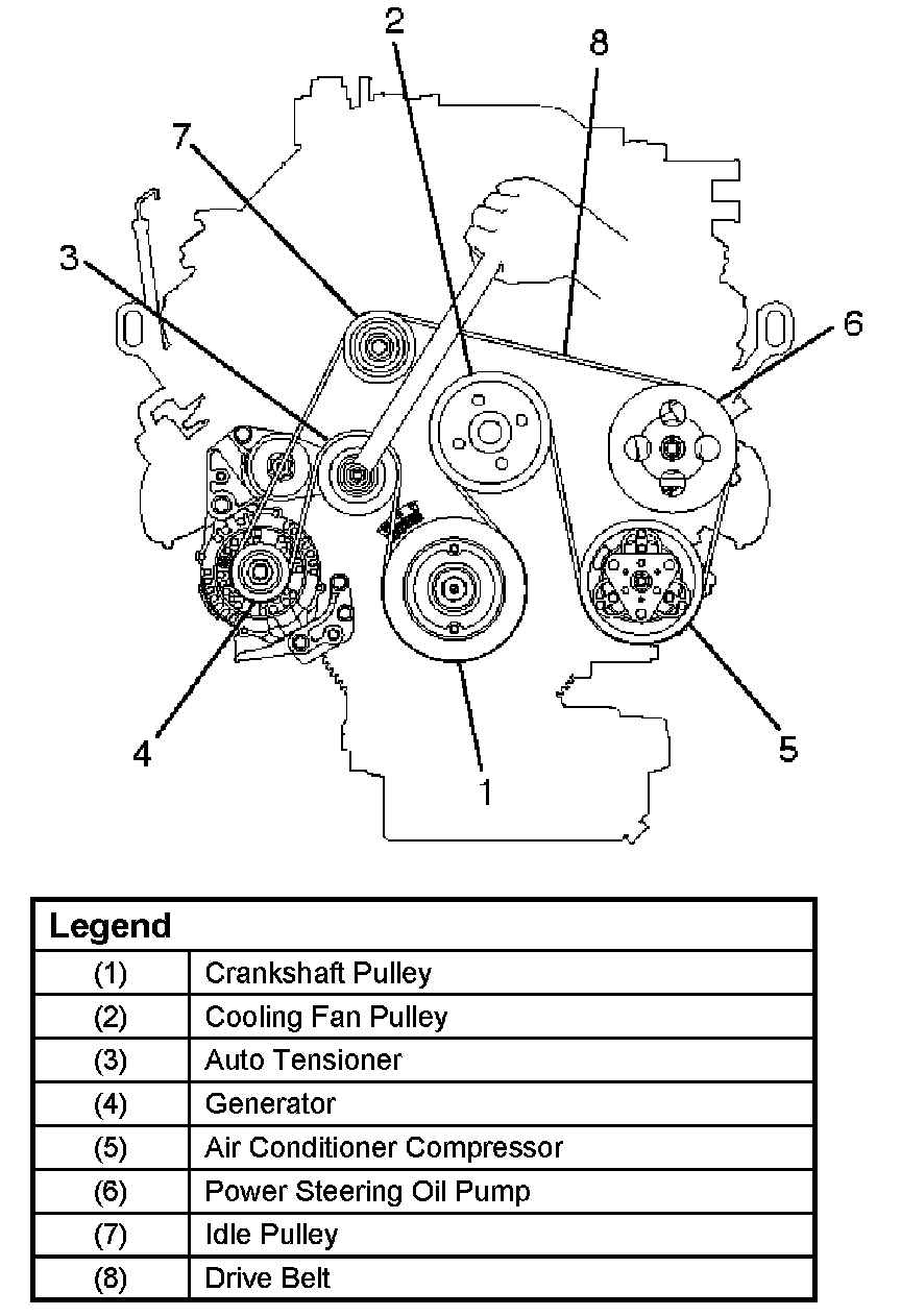 Note: For correct belt installation, the letter on the belt must be able to be read as viewed from the front of the vehicle.
