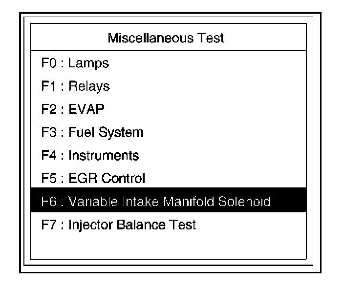 4. Select F6: Variable Intake Manifold Solenoid Test.