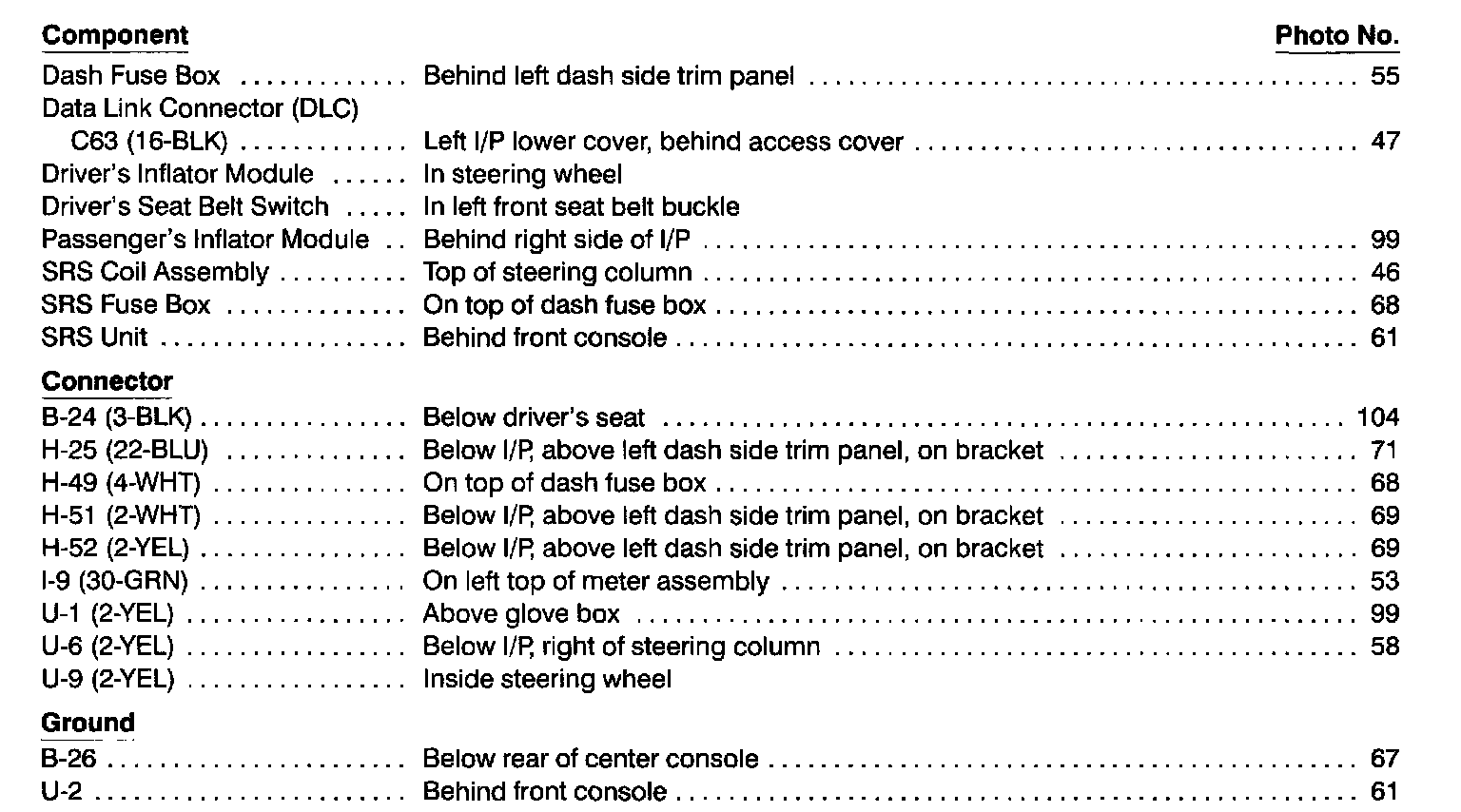 Component Location Index photographs can be found at Component Locations.