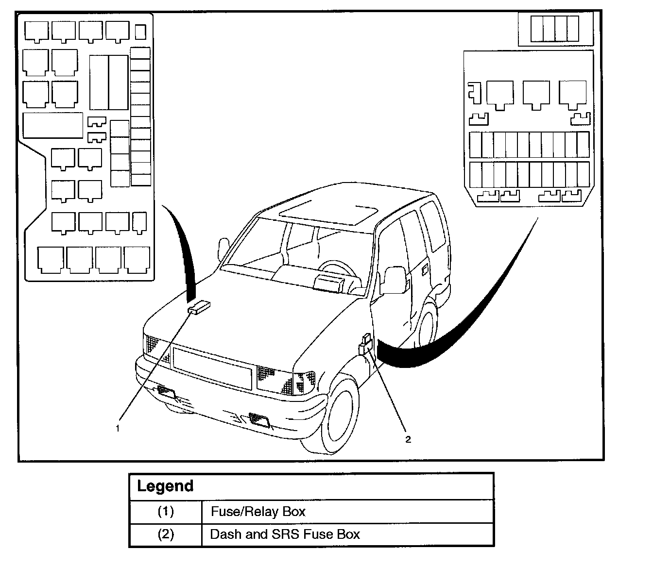 Dash and SRS Fuse Boxes: