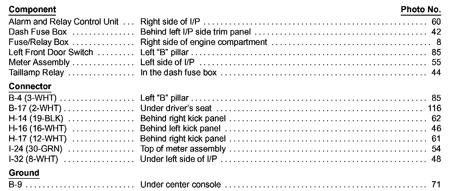 Seat Belt, Lamps-On And Key-In Ignition Warning System Component Location Index Image 73-2: