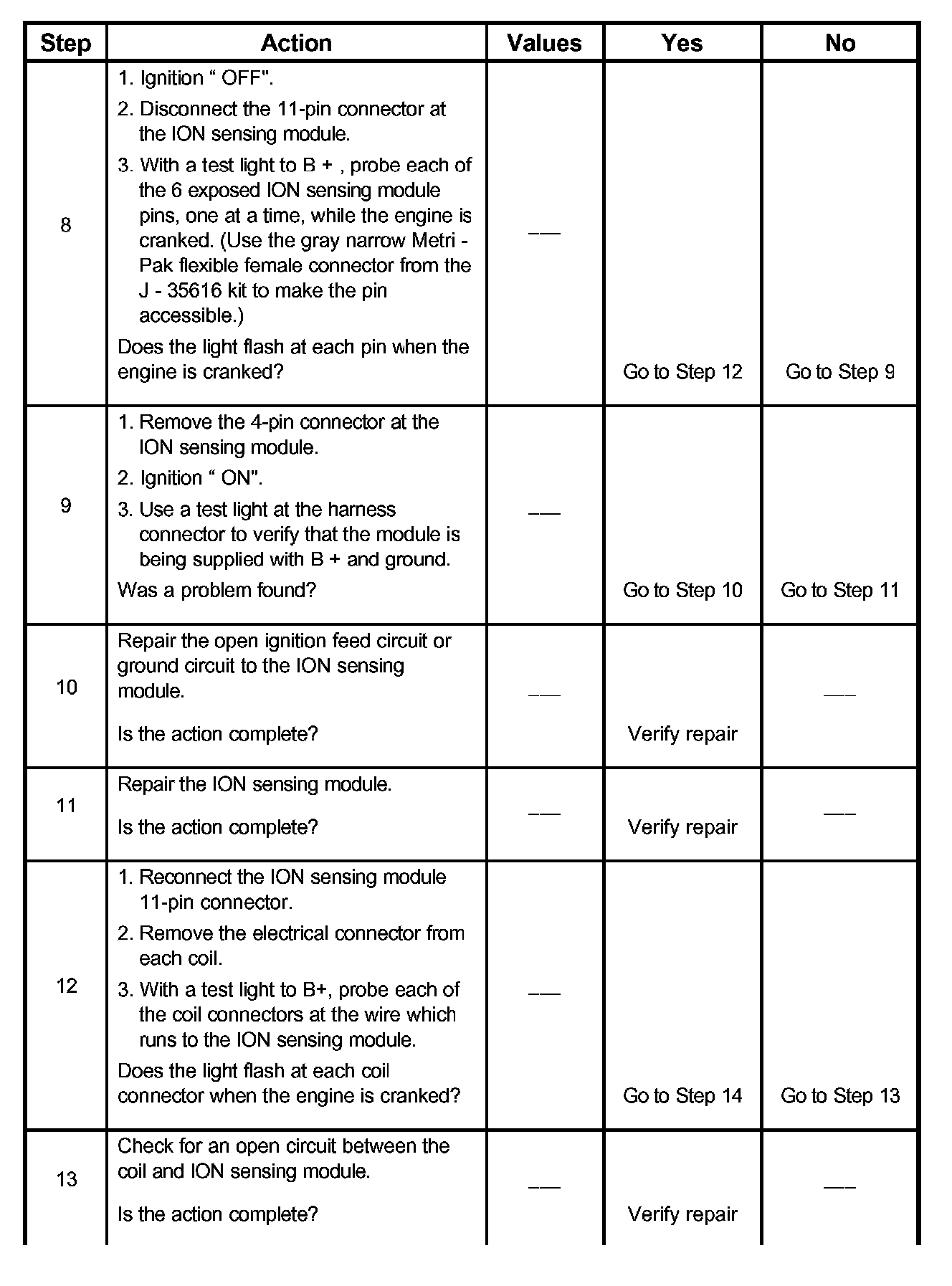 - Connect test light J 39021 - 95 to the connector. Do any of the light constantly illuminate or fail to blink when the engine is cranked? If so, repair the short or open circuit, or replace the PCM if indicated.