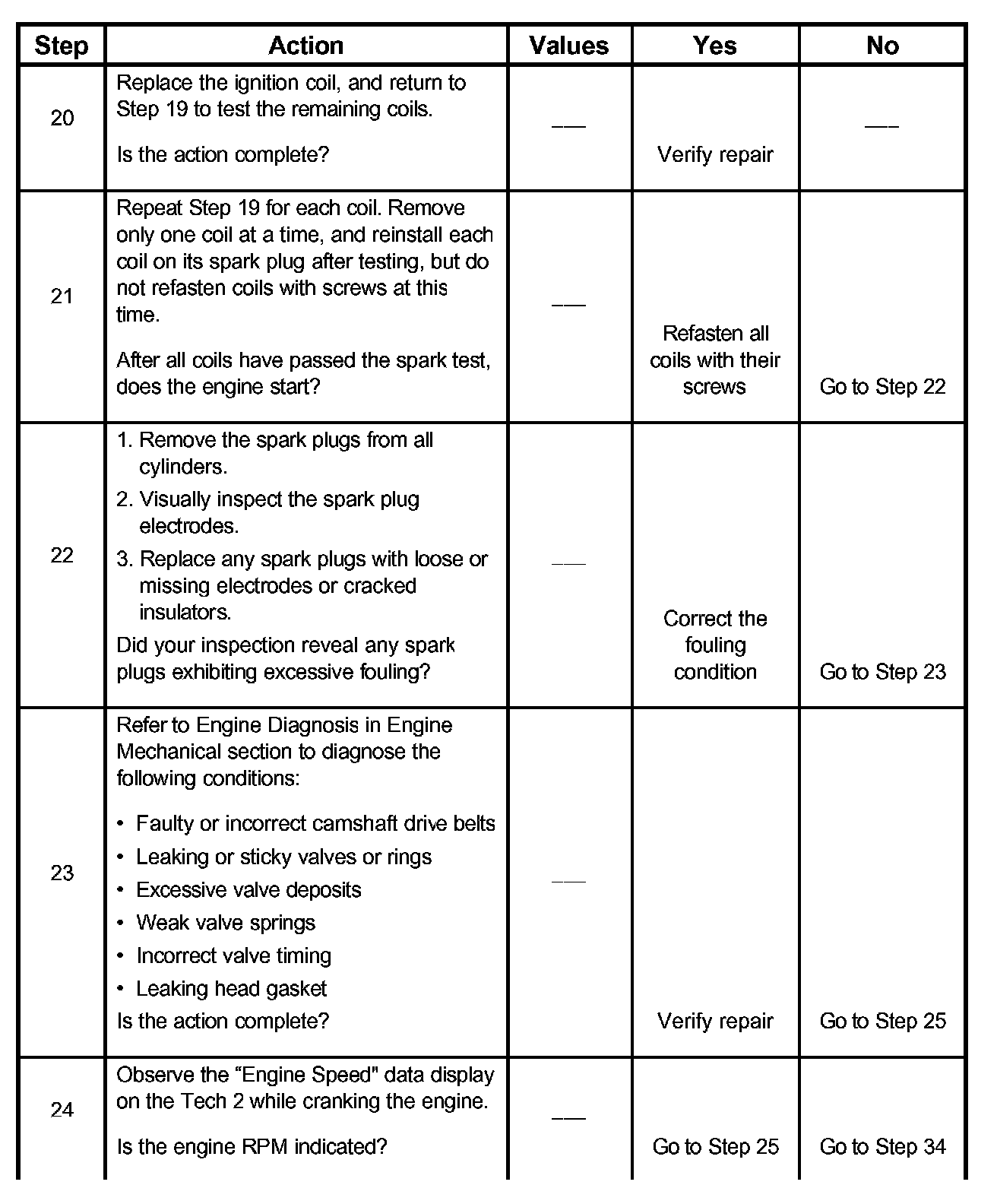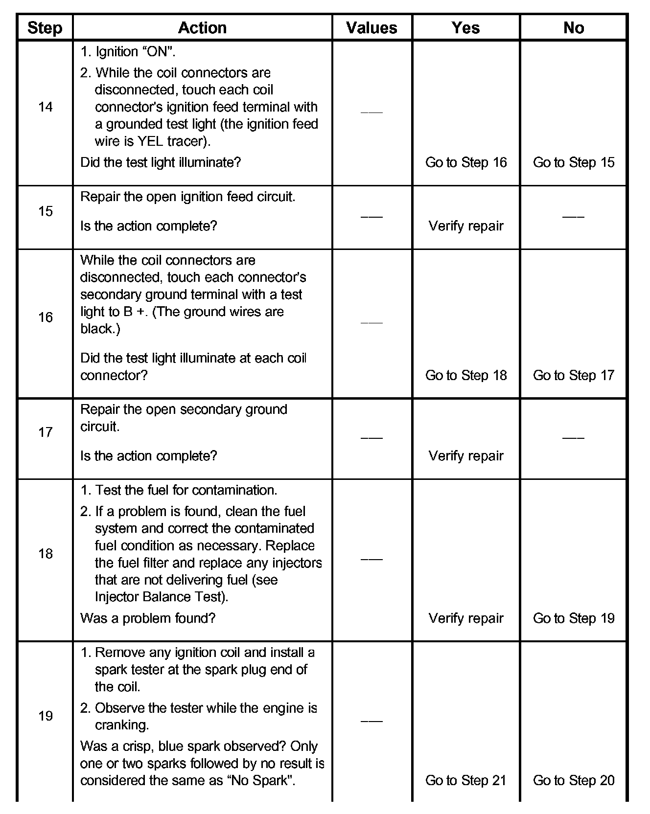 25. If there is an open or shorted driver circuit, DTCs 201 - 206 and a misfire DTC 301 - 306 should be set. All six injector driver circuits can be checked at one time without removing the intake manifold if a J 39021 - 95 test light is available. This is the alternative procedure: