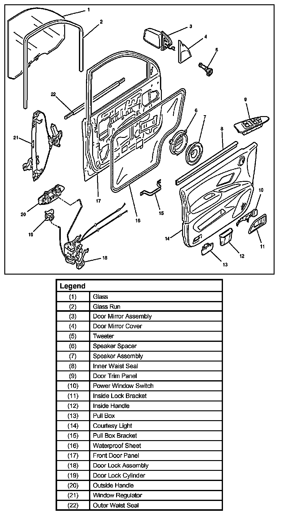 Front Window Regulator, Glass and Glass RunParts Location: