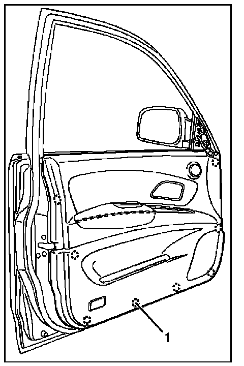 6. Remove the trim panel at the 8 clip positions (1).