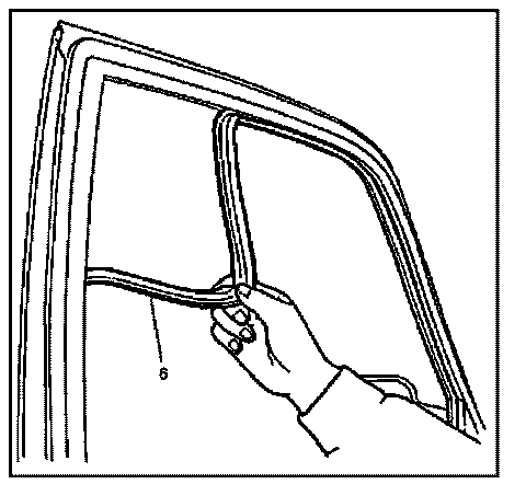 - Pull the glass run (6) from the door frame.