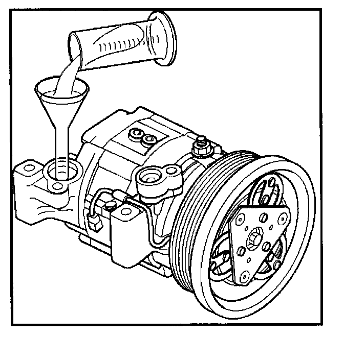 The new compressor is filled with 150 cc (5.0 fl.oz.) of compressor oil and nitrogen gas. When mounting the compressor on the vehicle, perform the following steps: