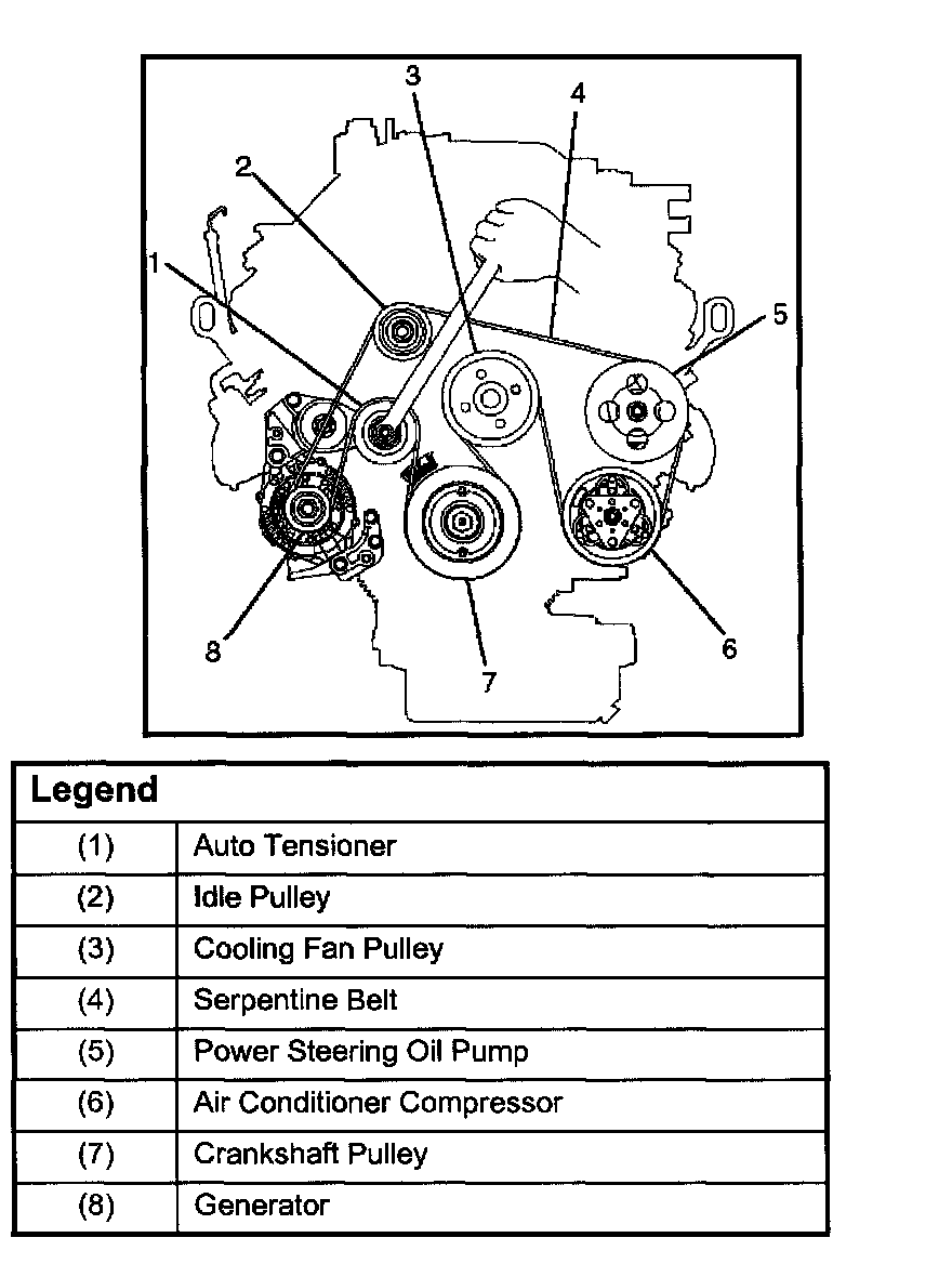 - Move serpentine belt tensioner to loose side using wrench then remove serpentine belt.