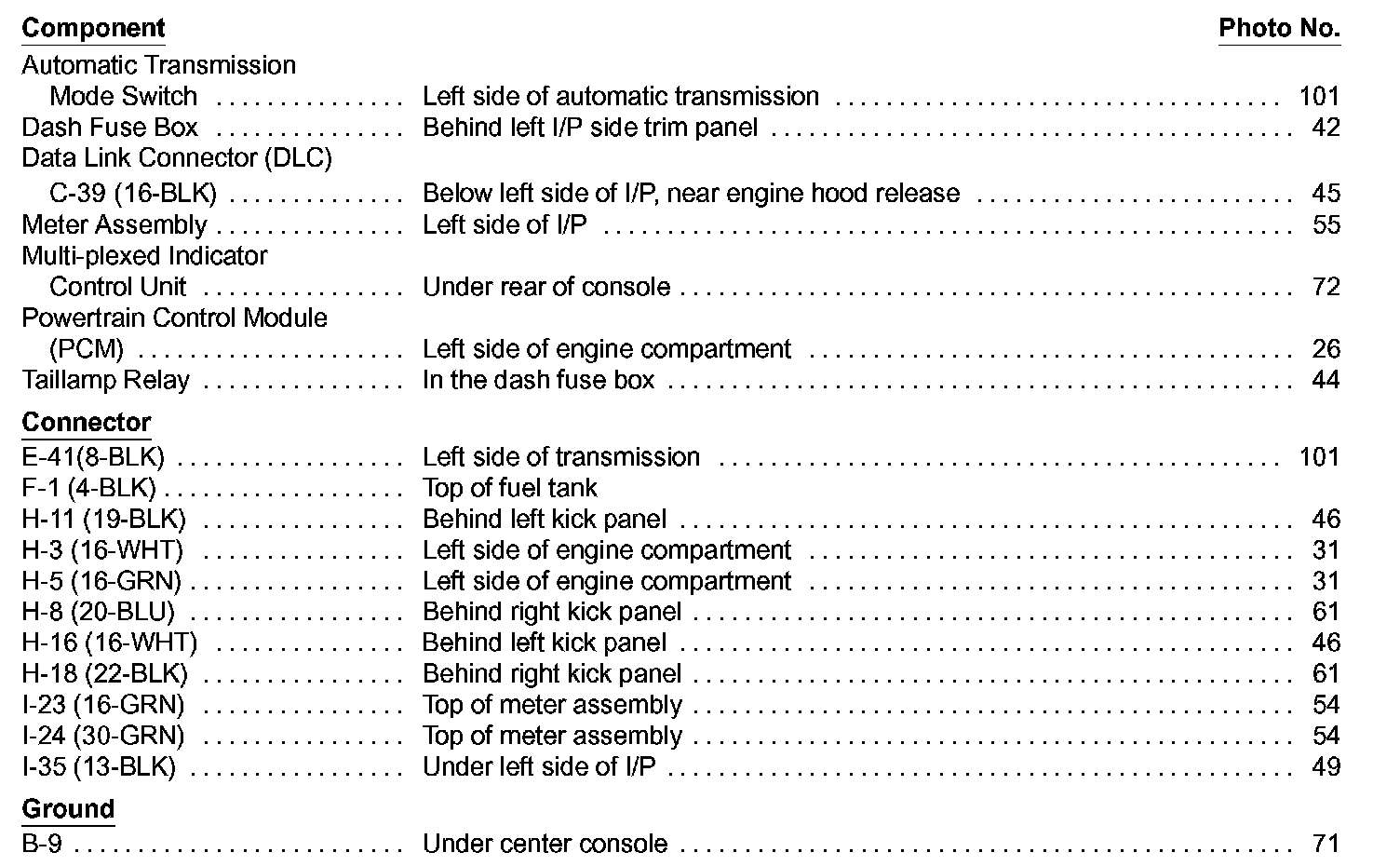 A/T Shift Indicator Component Location Index Image 89-2: