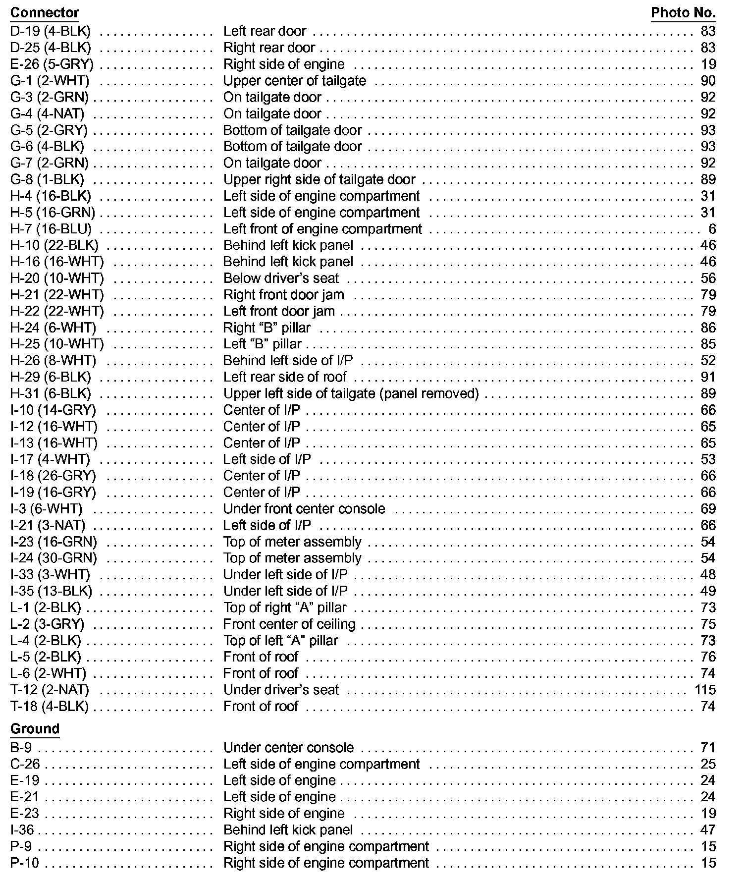 Ground Distribution Component Location Index 2: