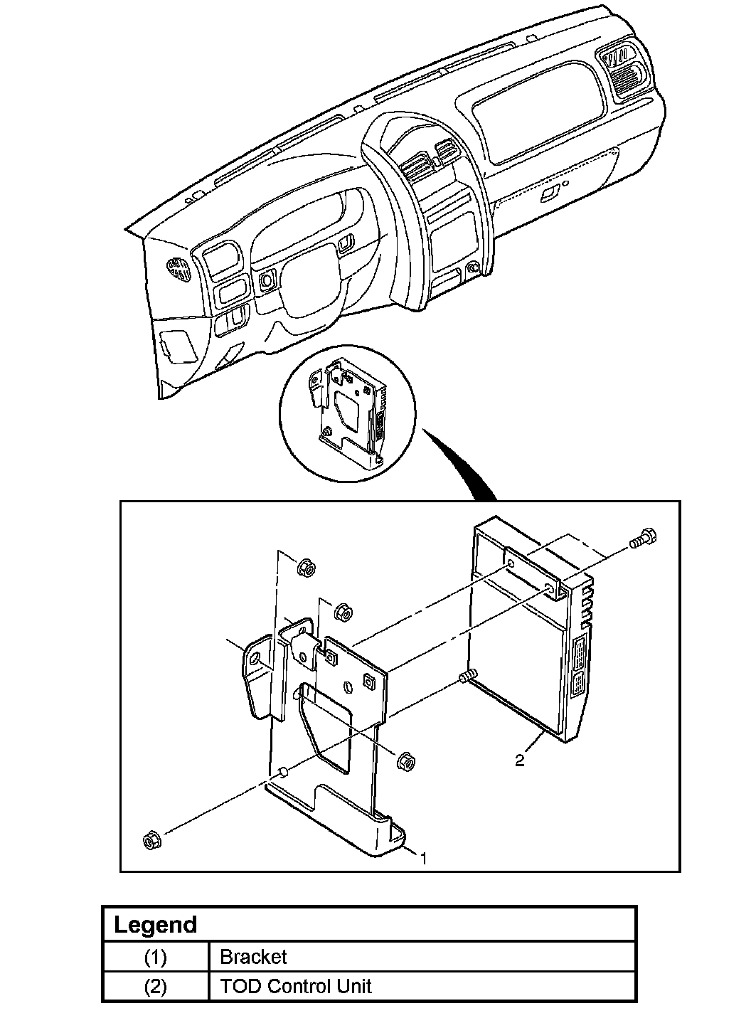 3. Remove the bracket retaining nuts (3 pieces) and the bracket with TOD control unit.