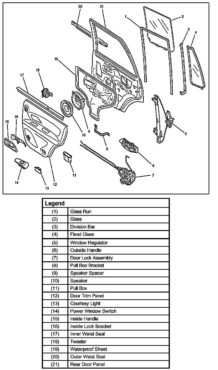 Rear Window Regulator, Glass and Glass RunParts Location: