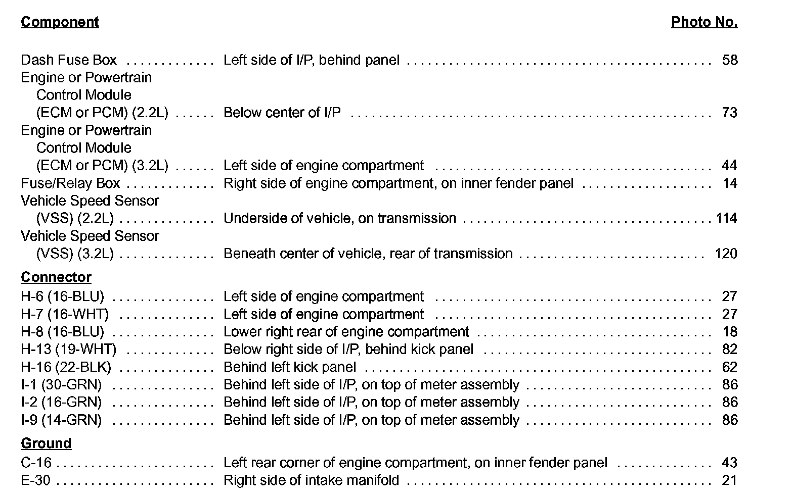 Vehicle Speed Sensor (VSS) Index Image 33-2:
