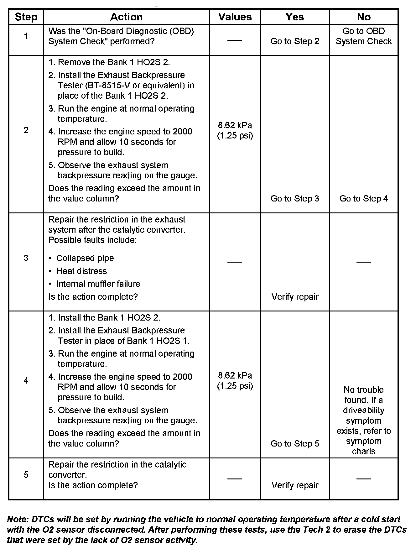 Bank 1 Restricted Exhaust System Check