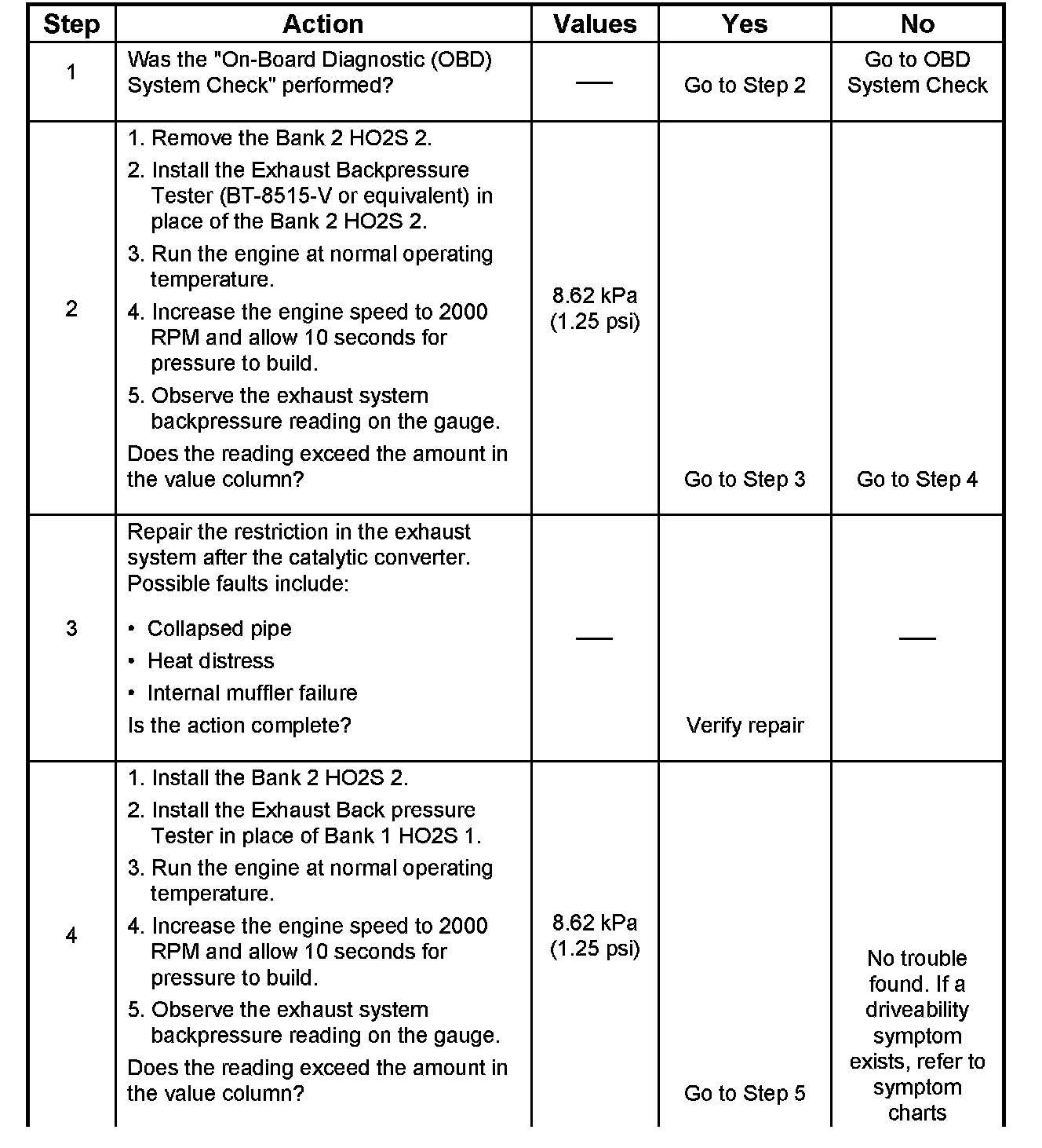 Bank 2 Restricted Exhaust System Check