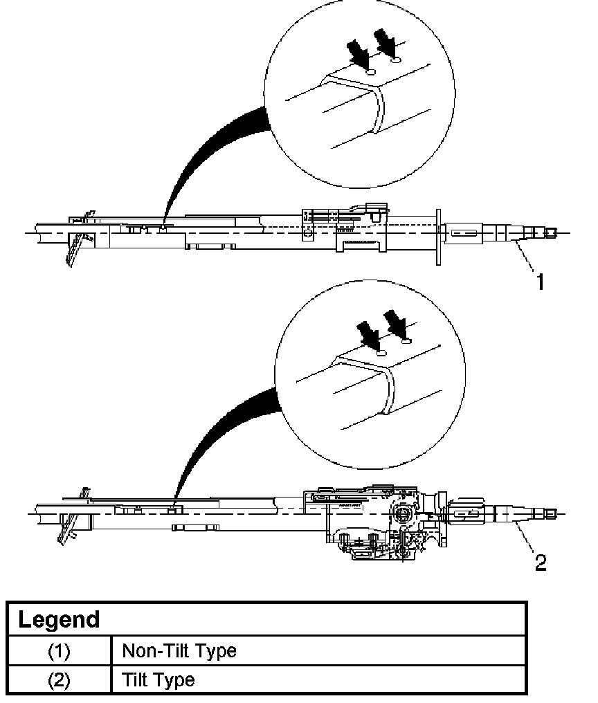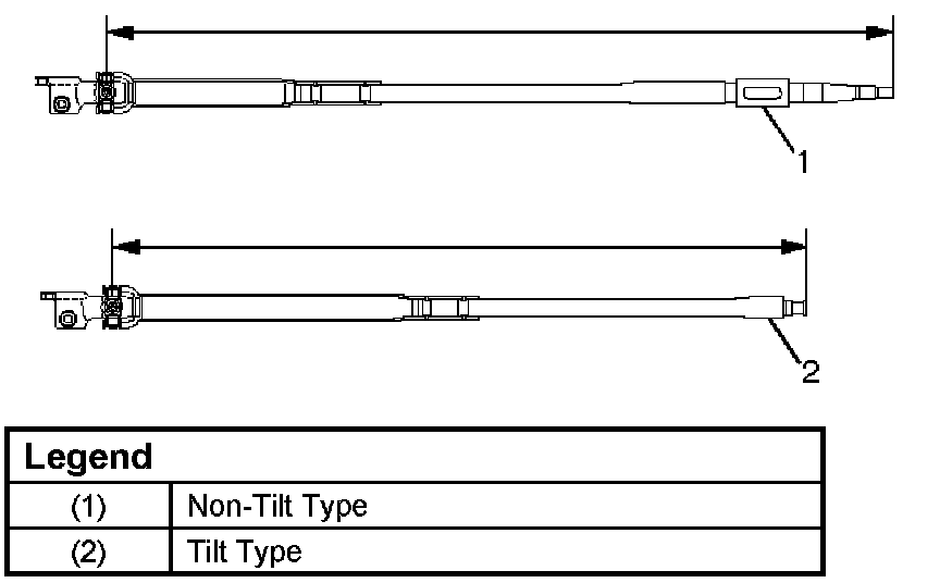 Check the shaft length from the upper end of the slide joint to the end of the shaft. If column length is not in specifications, steering column should be replaced.