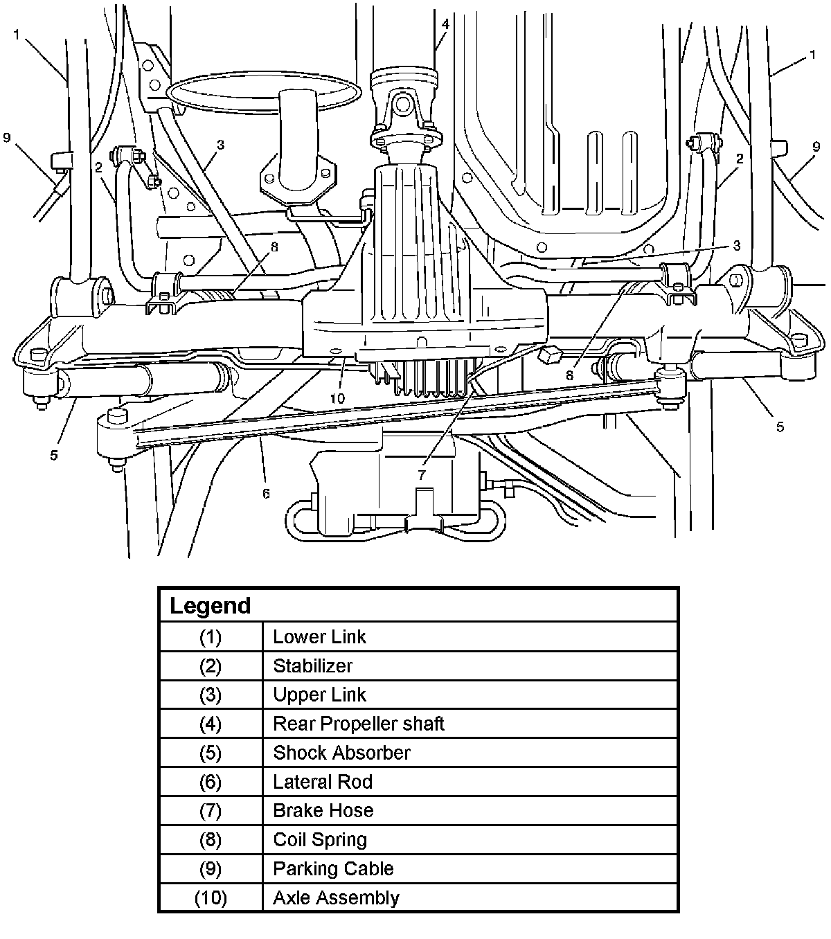 7. Install the lower link fixing bolt and nut to the axle housing. 8. Install the upper link bolt and nut to the axle housing.