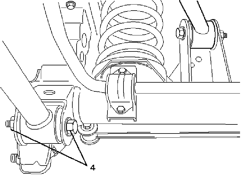 14. Remove the lower link fixing bolt and nut (4) from the axle housing.