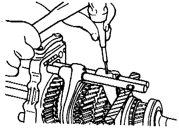 - Hold a round bar against the shift rod end lower face to protect it against damage.