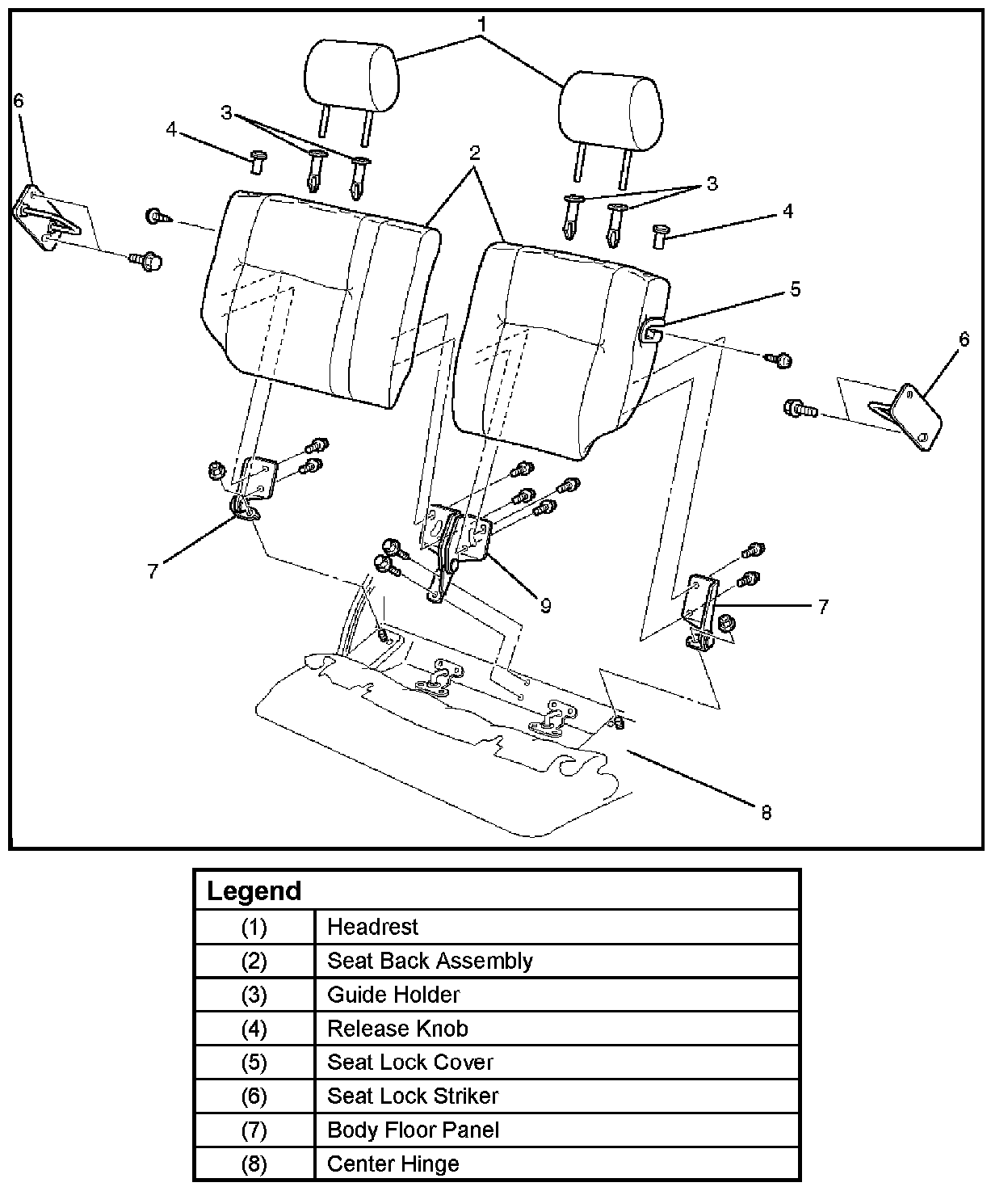 Rear Seat Back AssemblyRear Seat Back Assembly And Associated Parts:
