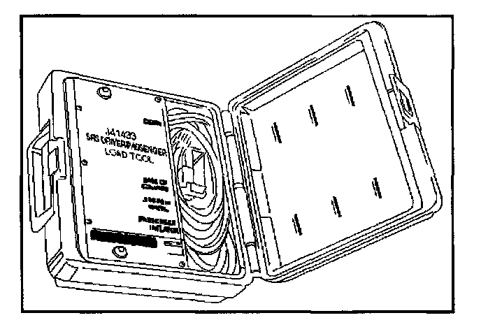 WARNING: TO AVOID DEPLOYMENT WHEN TROUBLESHOOTING THE SRS, DO NOT USE ELECTRICAL TEST EQUIPMENT SUCH AS A BATTERY-POWERED OR AC-POWERED VOLTMETER, OHMMETER, ETC., OR ANY TYPE OF ELECTRICAL EQUIPMENT OTHER THAN THAT SPECIFIED. DO NOT USE A NON POWERED PROBE-TYPE TESTER. INSTRUCTIONS MUST BE FOLLOWED CAREFULLY, OTHERWISE PERSONAL INJURY MAY RESULT.J-41433 SRS Driver/Passenger Load Tool