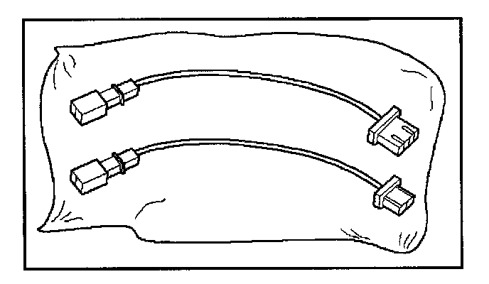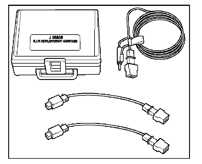 No more than two connectors are used at any time. One of the small connectors is used to substitute for the load of the driver air bag assembly when it is connected at the top of the column to the SRS coil assembly. Another small connector is used to substitute for the load of the driver air bag assembly and the SRS coil assembly when it is connected at the base of the column to the SRS wiring harness. The third small connector is used to substitute for the load of the passenger air bag assembly when connected to the passenger air bag assembly harness connector.