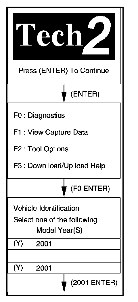 7. Verify the Tech 2 power up display.