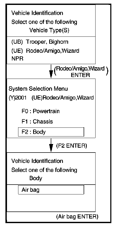 From 2001 RODEO (UE), dealer service departments are recommended to use Tech 2. Please refer to Tech 2 scan tool user guide.