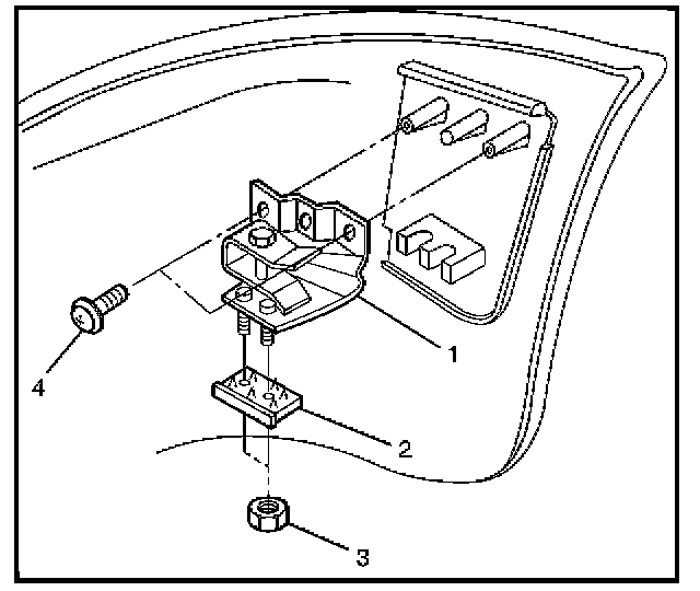 - Remove the two screws (4) and the two nuts (3) and release the claw from the washer (2).