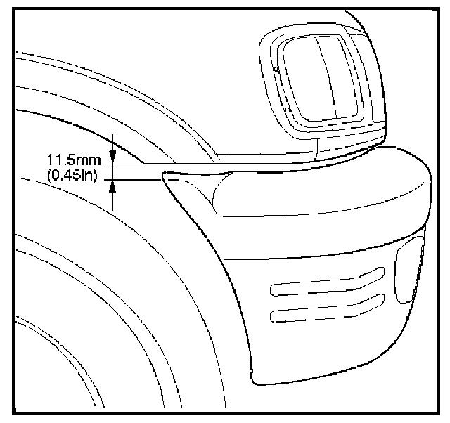 - When the bolts fixing front bumper assembly are tightened, adjustment should be made between the back bar and front side bumper so that a clearance of 14.5 mm (0.57 in) is provided between the lower side of the fender and the upper side of the front bumper.