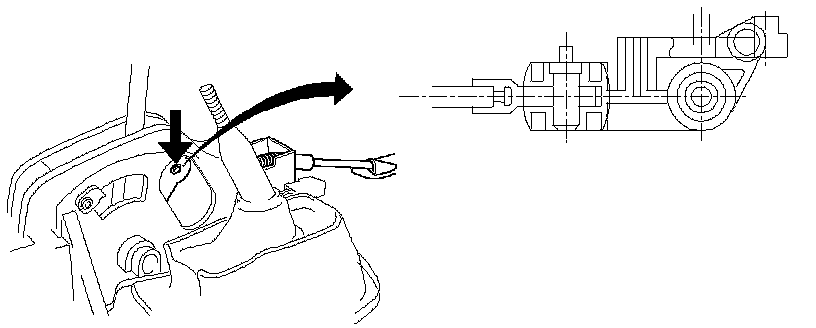 4. Set inner cable end in selector lever and push pin into selector lever hole and inner cable end.