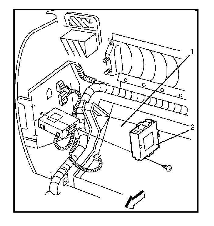 3. Remove the alarm and relay control unit (2).