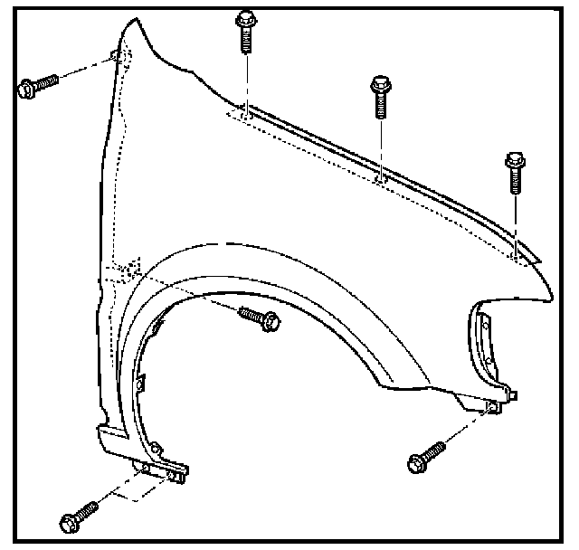 1. Tighten the front fender panel fixing bolts to the specified torque.