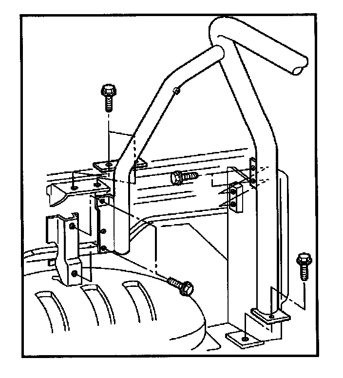 - Remove the two sets of seven fixing bolts on the left and right sides. Note that on the soft top model, two sets of the fixing bolts are also used to secure the tarpaulin frame assembly in place, and that on the resin top model, one set of the fixing bolts are also used to secure the resin top in place.